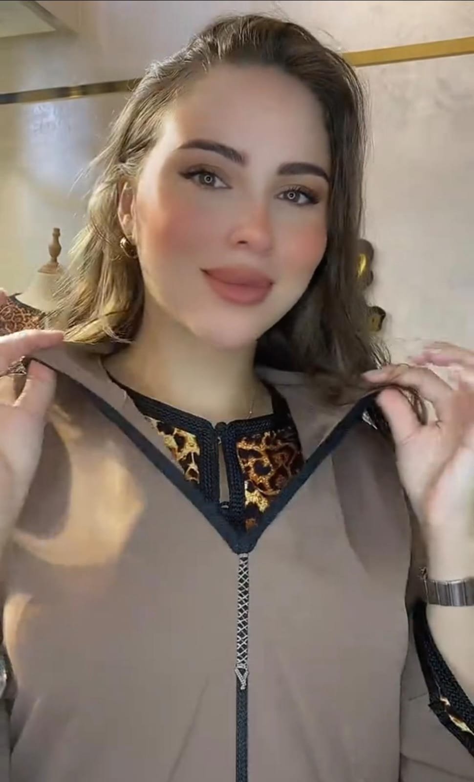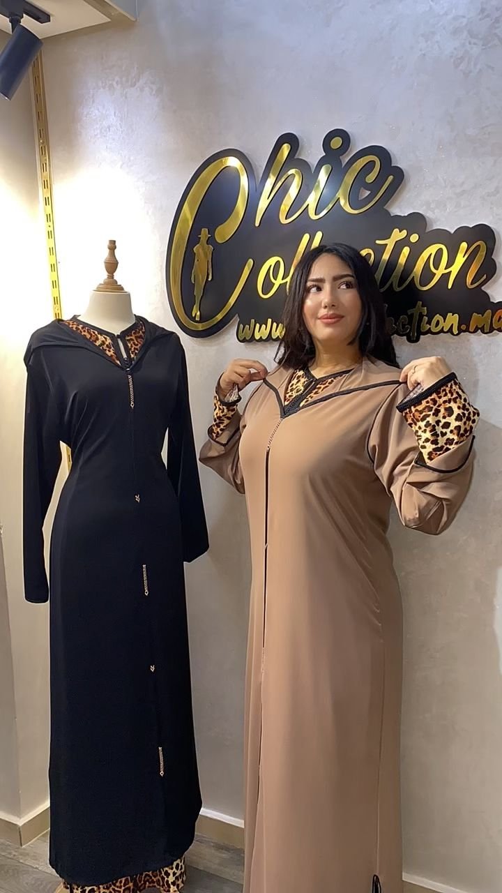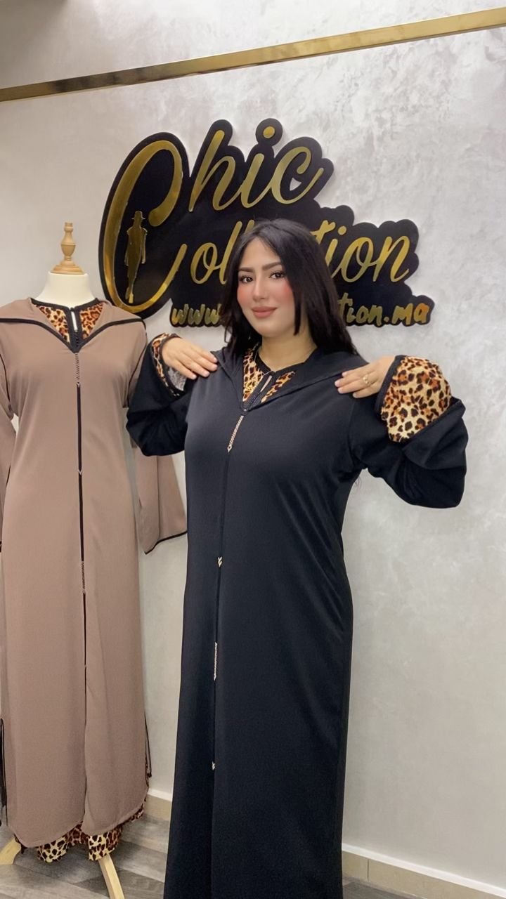 جلابة عصرية بلمسة فاخرة، تجمع بين البساطة والأناقة مع تفاصيل بطبعات ليوبارد تمنحك جاذبية استثنائية أينما كنتِ 💎.